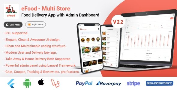 eFood - Food Delivery App with Laravel Admin Panel + Delivery Man