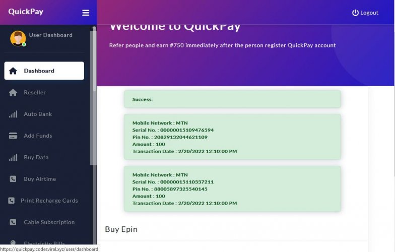 Bills Payment VTU system business selling Electricity Bills Payment, Education payment, Betting payments, Bulk SMS, Recharge Card Printing, Insurance, Script