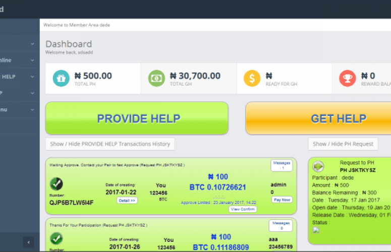 Accès à la démo FRONT END-- https://demo2.scriptdemo1.buzz/App/ Url de connexion utilisateur :--  https://demo2.scriptdemo1.buzz/user/login.php E-mail :-- user@gmail.com  Mot de passe :-- 12345678 URL ADMIN :--  https://demo2.scriptdemo1.buzz/mainpanel Nom d'utilisateur :-- administrateur  Mot de passe :--  admin12345 Avec le script Complete MMM Clone, vous pouvez démarrer votre propre site Web comme le site Web mmm en quelques clics en moins de 5 heures. Ajoutez vos propres fonctionnalités. ce que vous devez faire est de télécharger le script, puis de démarrer votre propre version sur un site Web comme mmm. Aucune compétence en programmation n'est nécessaire pour exécuter ce script mmm, entièrement modifiable. Téléchargement automatique après paiement, MMM Script a été repensé pour une utilisation facile et intégré à différents modes de paiement, notamment Bitcoin et bien plus encore. Databse SQL est également inclus dans le package en bonus.  Caractéristiques : Retour sur investissement réglable Bureau personnel (B.P.) Système de florins Gestionnaire SYSTÈME SYSTÈME MAVRO  MMM mondial se ressemble Blogue Nettoyer le tableau de bord d'administration  Nettoyer le tableau de bord utilisateur  Monnaie locale, Perfect money OU bitcoins Facile à mettre en place Page d'actualités page de contact Page des témoignages Intégration des médias sociaux Fusion manuelle  fusion automatique  Minuterie de fusion automatique  autopurge.  pair à pair système de tickets d'assistance Téléchargement de pop photo de profil utilisateur page de destination personnalisée Système de référencement primes de parrainage Gestion des actualités Messages urgents du tableau de bord fonctionnalité de chat en direct Guide de configuration  Sans bugs Accompagnement professionnel  Et bien plus encore.
