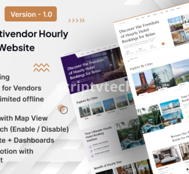 TimeStay” is a Multivendor Hourly Hotel Room Booking Website (Subscription Based) where Admin will sell subscription plans (monthly, yearly, lifetime) to vendors. Vendors will subscribe to this plans & add hotels, rooms. Customers can book those rooms on hourly basis (ex – 3 hrs, 6hrs, 9 hrs etc…). Booked hours & holiday dates will be blocked for booking. Customers can search rooms with advanced search filters (ex – date, time, hours, location etc…). Also, it supports geo location / radius based hotels / rooms search, it can be enabled / disabled.