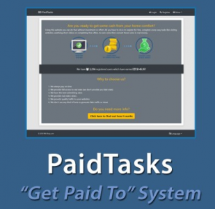 I'm happy introduce to you PaidTasks, a new system which let you create your own Get Paid To website. Using this system, you can start earning money by selling web traffic, youtube views or by providing offers to complete for your users, at the moment this being a niche with much potential and doesn't require too much investments or time.